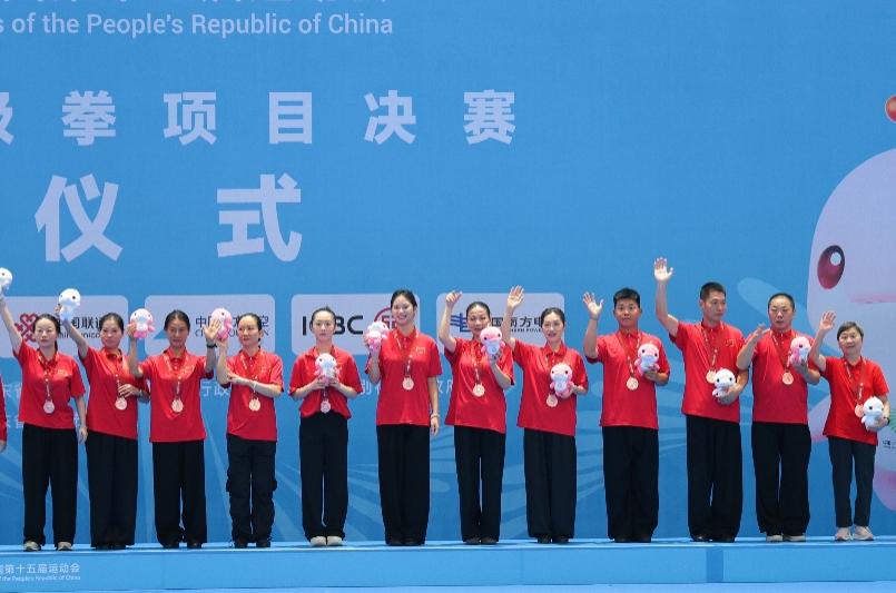 近期,中华人民共和国第十五届运动会群众展演太极拳项目决赛在“武术之城”广东佛山圆满落幕。来自全国的56支精英展演队、610名运动员齐聚赛场,以拳会友、同台竞技,上演了一场兼具传统韵味与体育精神的太极盛宴。其中,由我院教师梁琪、2023级体教专业本科生周元芬及浦东东育太极拳社的9队员组成的队伍,凭借二十四式简化太极拳的出色演绎斩获三等奖,为上海赢得荣誉。