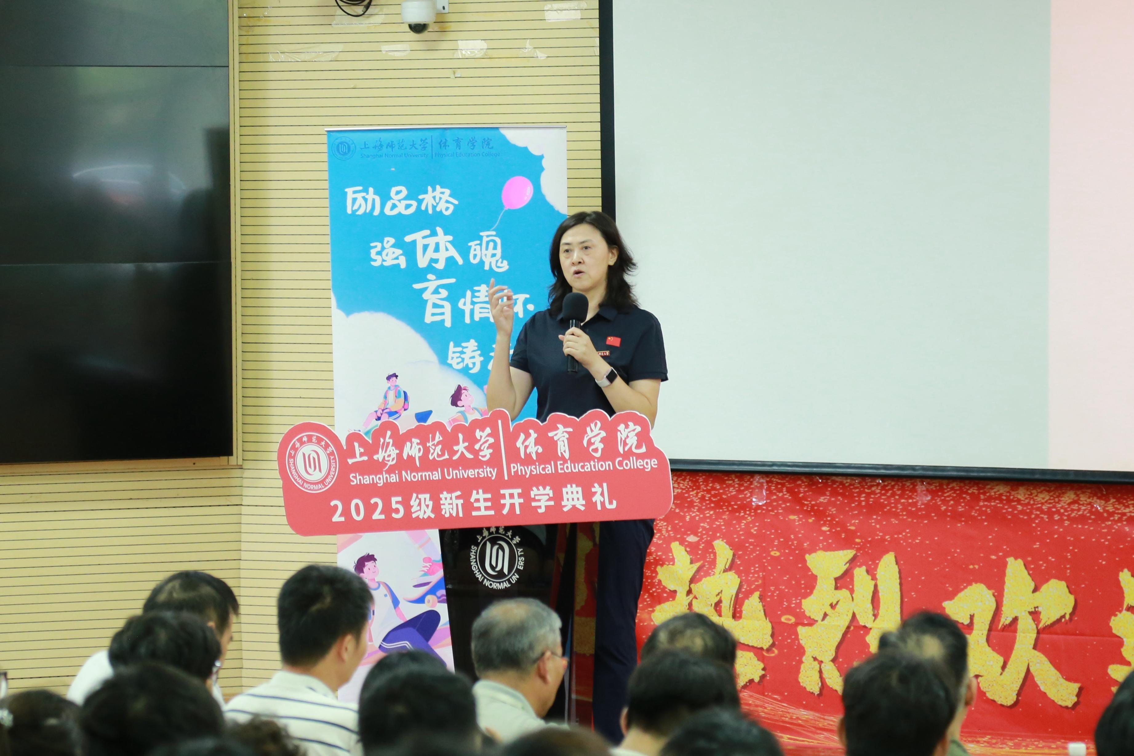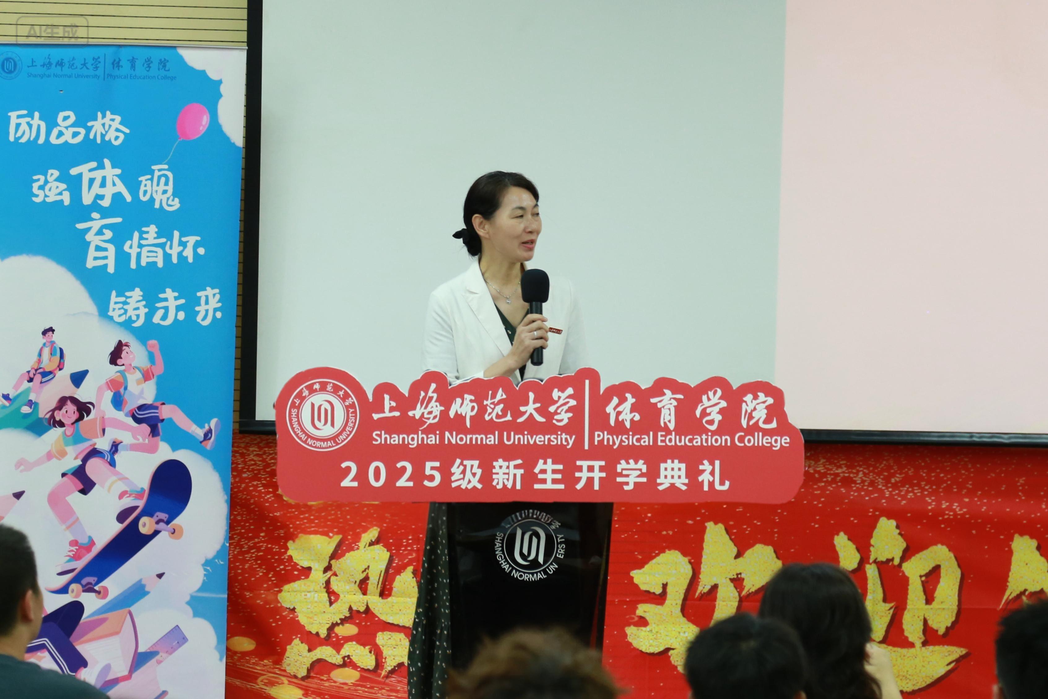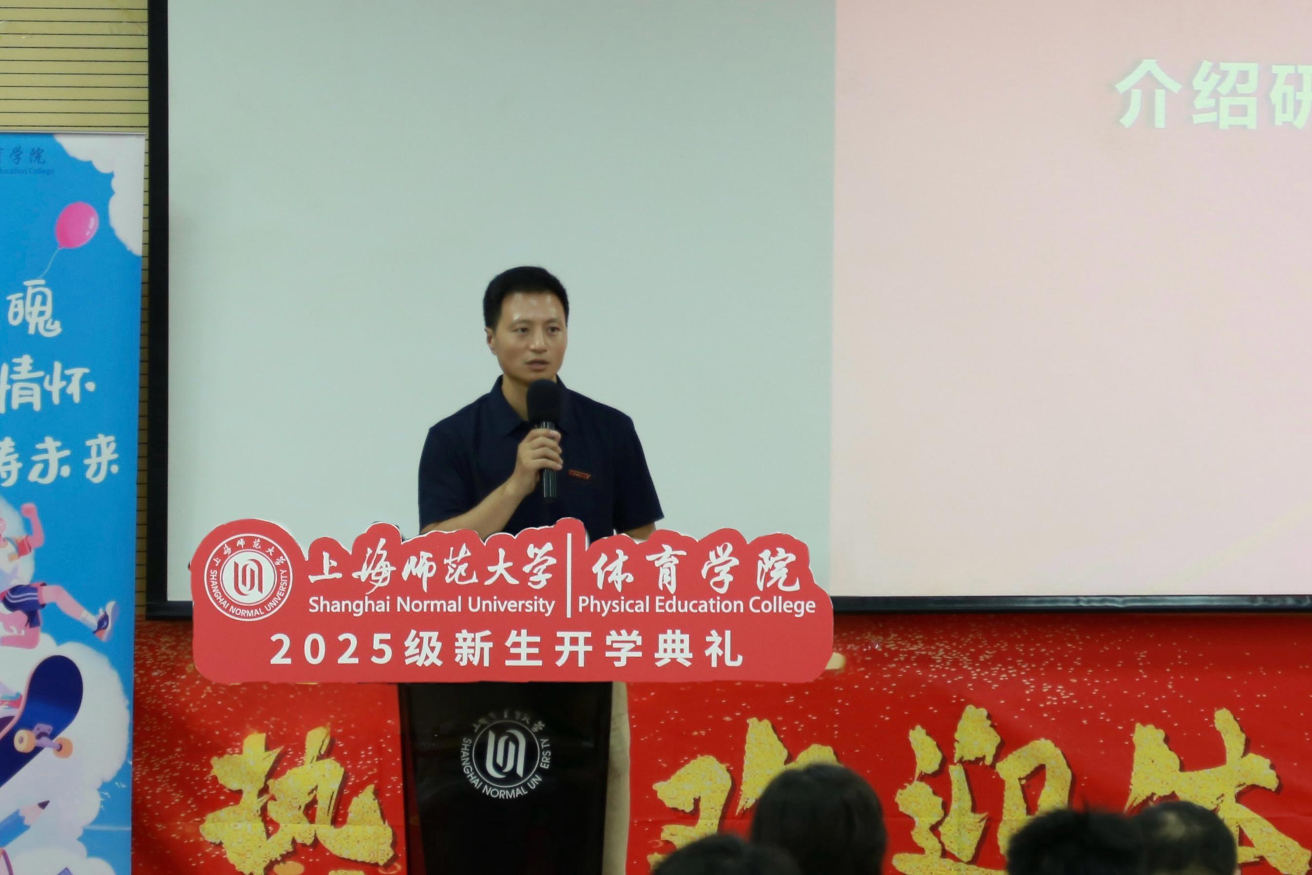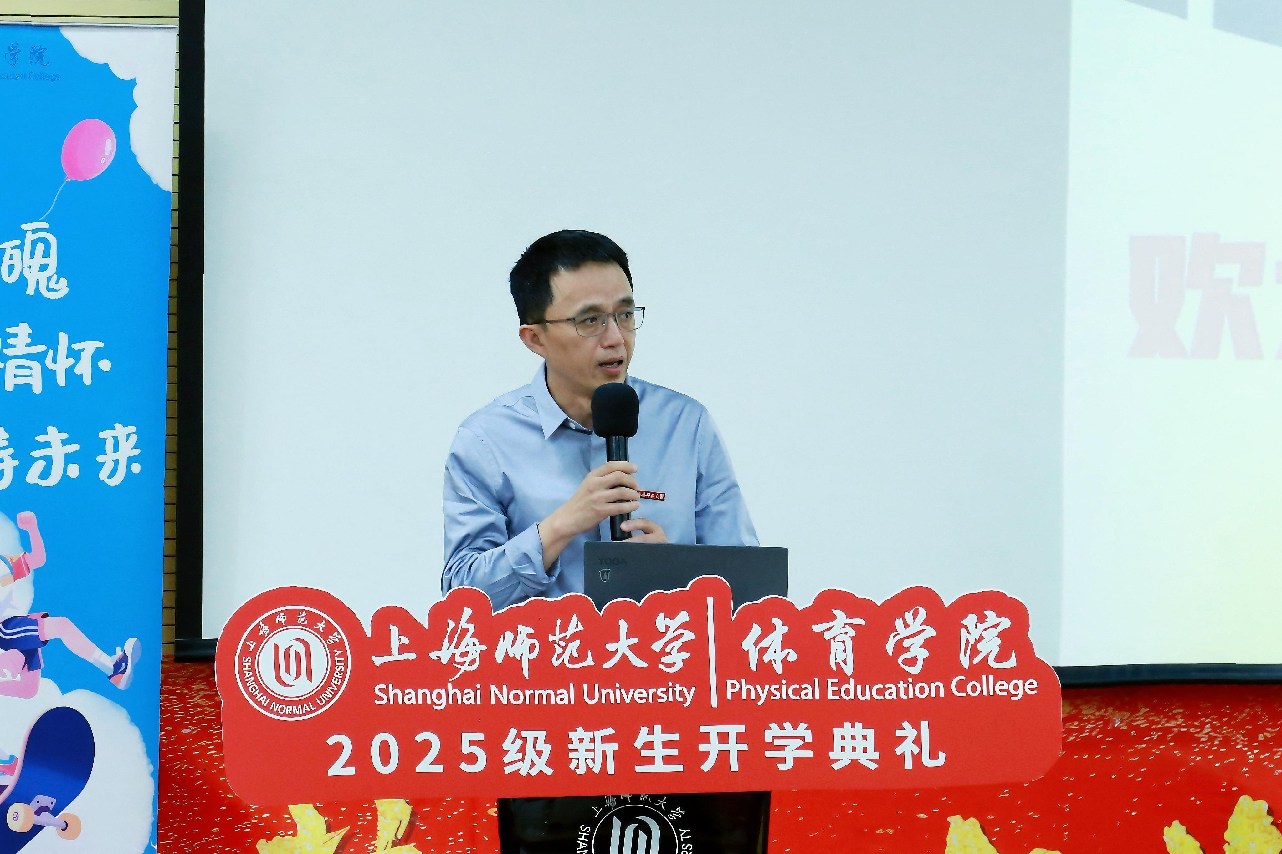 9月24日下午,体育学院2025级新生开学典礼在奉贤校区二教102隆重举行。学院党政班子全体成员、学科带头人、各专业负责人、教师代表以及250余名本研新生齐聚一堂,共同见证新征程的开启。院党委副书记、副院长胡斌主持开学典礼。