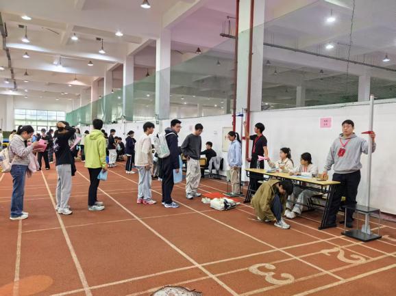 为确保检测工作高效、有序开展,体育学院对测试流程进行了系统性优化与创新,首次实施“双线并行、轮换循环”的检测机制。参测学生被科学划分为健康筛查A组与素质测试B组,两组同步启动测试流程,并在完成首阶段项目后实现无缝衔接与轮换。这一流程设计科学合理,充分体现了组织工作的系统性与前瞻性,各检测教室均设有清晰的流程指示图,既优化了测试路径,也方便学生能够快速定位下一项目,进一步提升了参与体验。