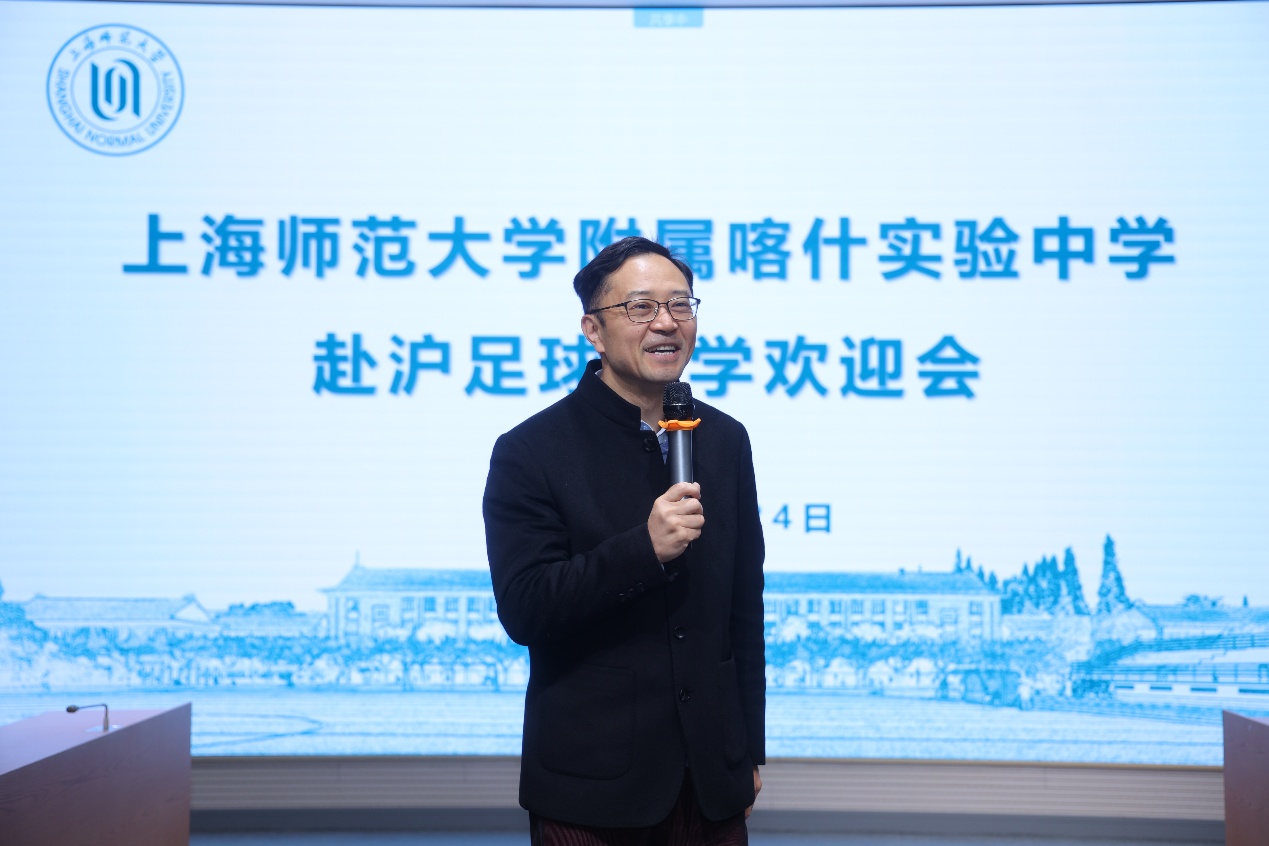 基教处处长郭长江在欢迎词中强调,上海师范大学作为上海援疆教育集团核心参与单位,此次足球访学活动,是基教处统筹主导、体育学院依托学科专业优势深度参与的足球教育援疆新范式。活动将足球技能培养与育人目标深度融合,旨在促进喀什六中足球队与上海标杆型足球青训机构的交流,让学生球员在团队协作与竞技拼搏中锤炼坚韧品格、拓宽视野格局,着力实现立德树人的教育初心。