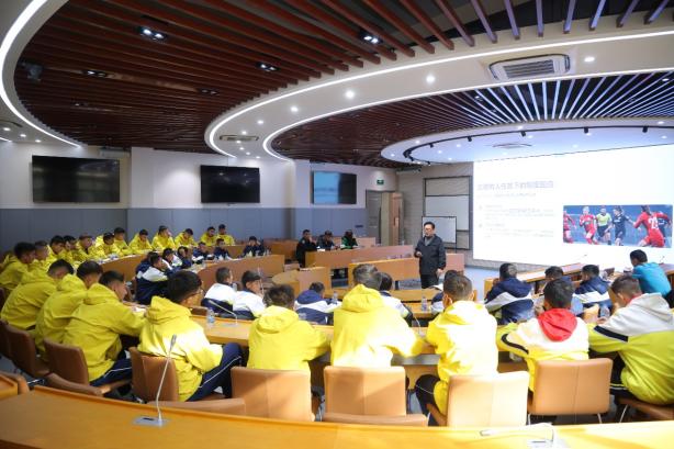 尹剑春教授以“足球运动员心理制胜法则”为主题开展讲座,以赛场常见心理困惑引发共鸣,从四大维度分享动作调节、心理暗号等实操技巧,助力球员成为自身心理教练。马忠臣老师开展校园足球诚信与赛事纪律处罚专题讲座,解读纪律处罚规则的适用场景、法理内核与教育价值,引导球员在体验尊重的正向反馈中,强化规则意识,内化担当品格。